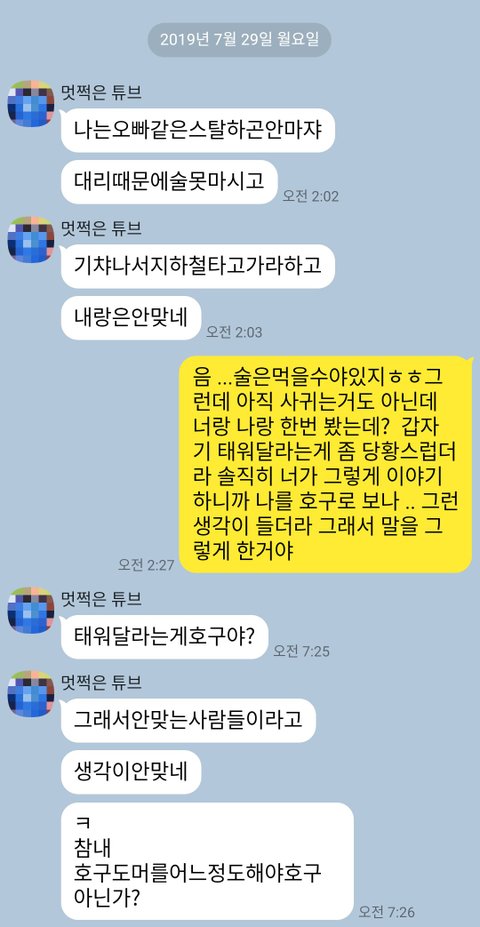 카톡이 저렇게 옵니다 화가 많이 난 것 같네요