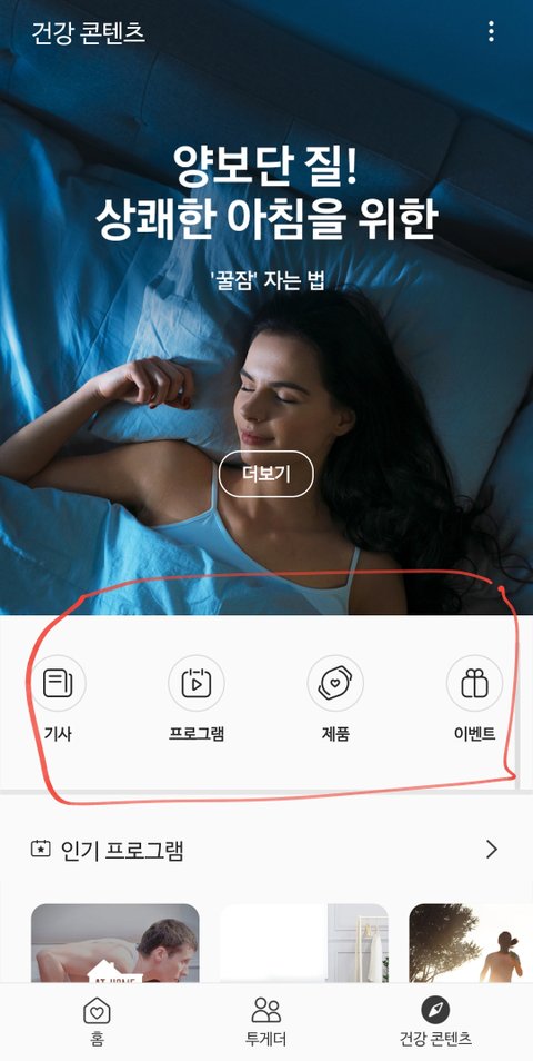 원래 삼성 헬스앱 들어가면 네모박스 안에 네개가 전부잖아 근데 언어설정을 한국어에서 영어로 바꾼 뒤에 들어가면