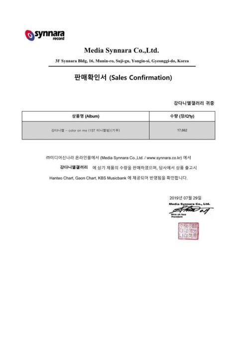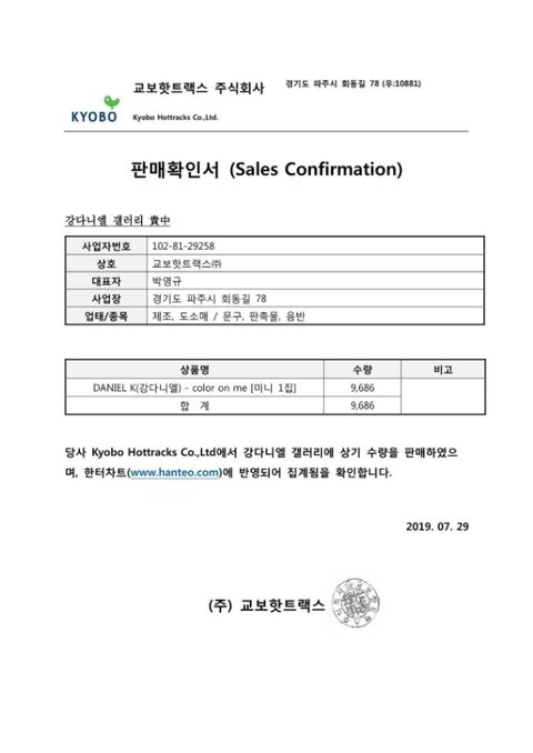 강다니엘의 솔로 데뷔 앨범 'color on me' 공구 영수증을 인증합니다.