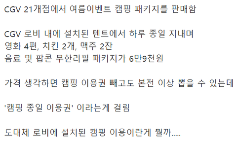 무리수라는 CGV 여름 캠핑 패키지 이벤트