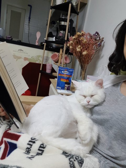누나 무릎이나 가슴에 올라가서 골골대고 누나 얼굴에 내 얼굴 부비부비하면 행복한다옹.