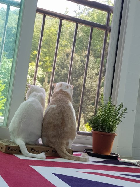 앞 나무에 짹짹이들 집이 있는데 매일 우리를 약 올린다옹.