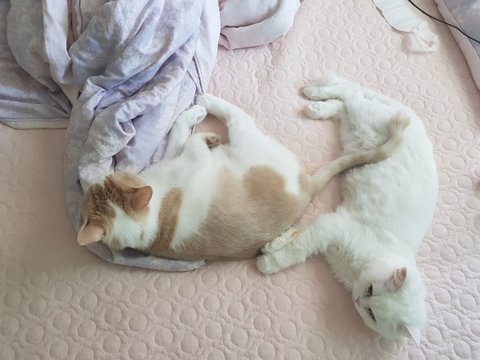 아, 누나가 돌아오자마자 우린 둘다 털을 내주었다옹.