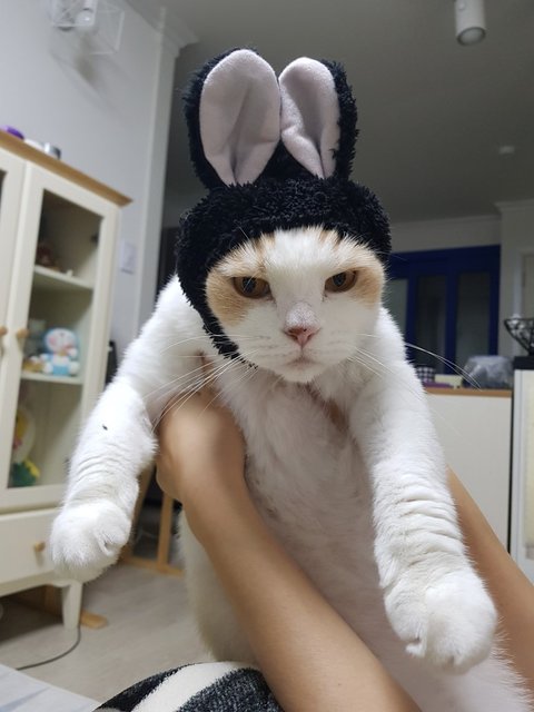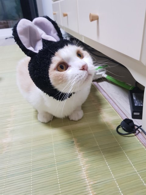 집사는 옛날 사람이라 토끼모자를 씌운다옹.