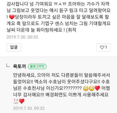 작가님도 소식 들었다고 요청이 많아서 블로그에 배경화면 원본 두가지 버전으로 올려주시고 댓글도 써주심ㅎ