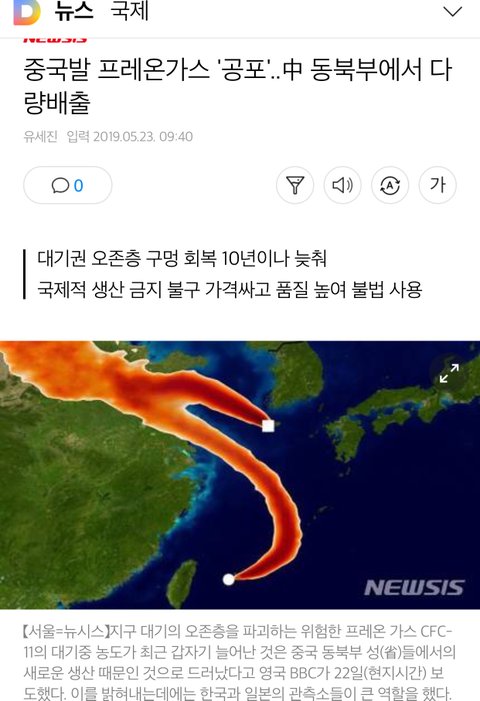 와 프레온가스 옛날에 저거 땜에 오존구멍생기고 난리나서 나라들끼리 안쓰기로 했구만 아무튼 중국답네