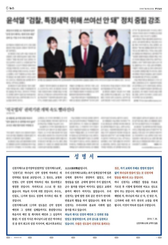 그래서 저희 신천지에서 성명서를 발표하고자 하는 바입니다.