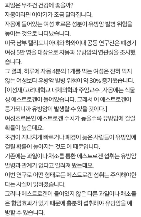 과일 자몽. 유방암 발병 확률 증가시켜...