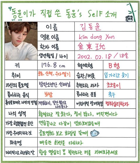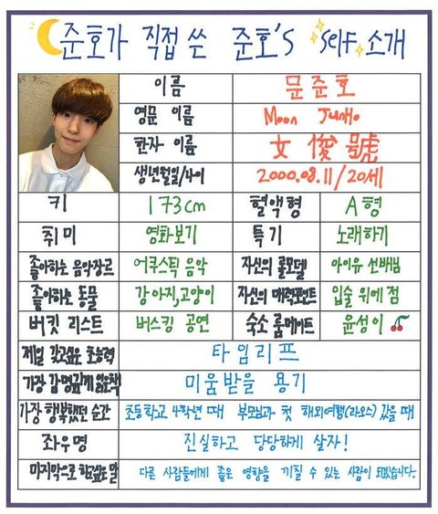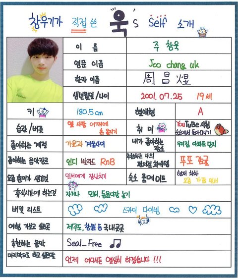 (차준호는 엑스원 데뷔 멤버로 뽑혔기 때문에 셀프프로필 없음)