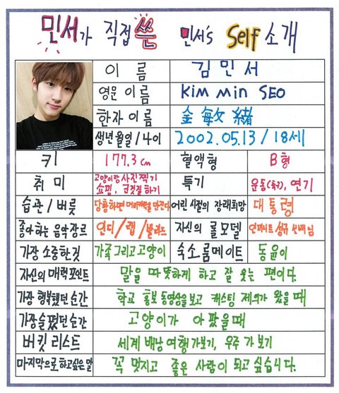 민서 롤모델은 같은 울림즈 식구인 인피니트 성규ㅇㅇ