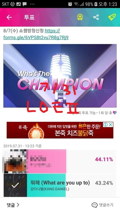 ⚡️아챔 아지톡 툽해주셔요 쇼챔은 투표가 40% 반영됨⚡️