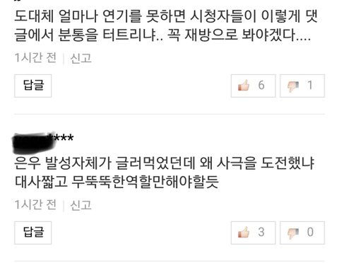 요즘에 조롱받고 있는 짤들인데.. 연기를 잘하는건 아녀도 다른사람들은 갖고있지 않은 미모로 시청자들 눈도 즐겁게 해주잖아.. 아이돌이 가창력 크게 뛰어나진 않아도 무대에서 표정이 이쁘면 무대 잘한다 소리 듣는것처럼.. 그렇게 나쁜것 같진 않은데 너무 조롱받는것 같애서 좀 그럼.. 잘생겨서 질투당한다 싶을정도로...