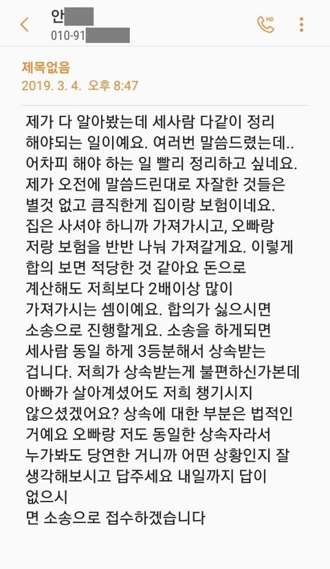 그 미움과 원망은 이해하지만 그로 인해 돌아가신 후에 재산처분 문제로 이렇게까지 해야하는지는 잘 이해가 가지 않습니다.