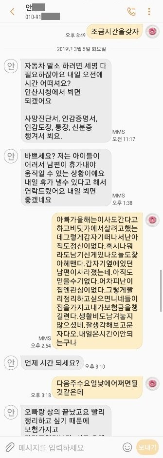 아빠 돌아가신 후 엄마에게 온 문자들입니다.