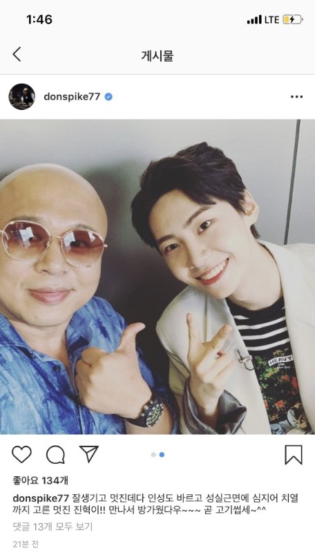 이진혁 돈스파이크 인스타에 올라옴
