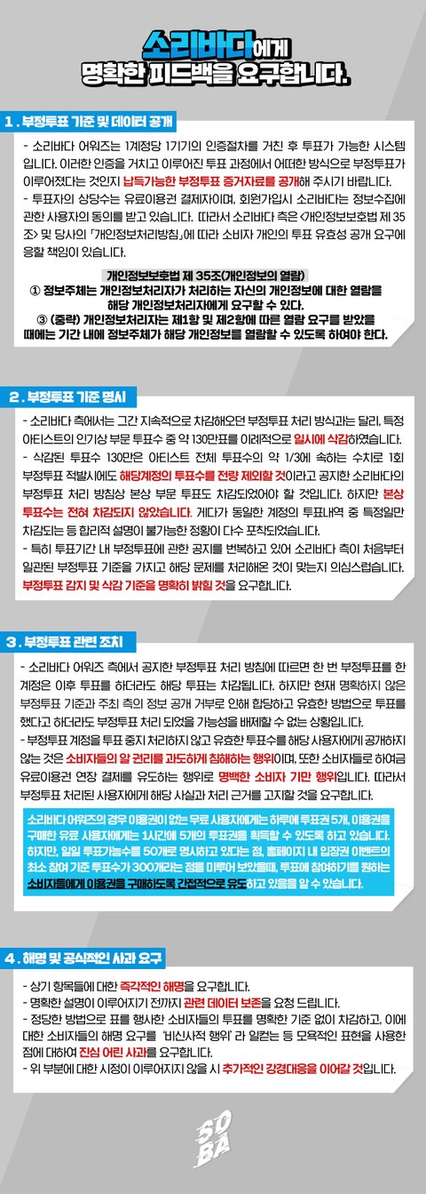 소리바다측이 말하는 부정투표에 대한 정확한 데이터 요구합니다.