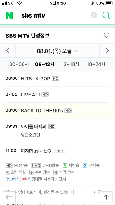 에수비에수엠튀비에서 아2돌대백과한당