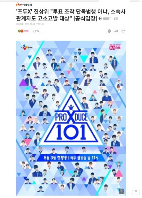 YTN 뉴스에서 어느 변호사가 나와서 프듀 제작진이 투표 조작 / 멤버 순위 바꾸기를 할 명분이 없는데 뭐하러 조작을 했겠냐 했다면서. 당연히 회사들이랑 뭔가가 있으니까 그런거지 ㅇㅇ 일 잘한다