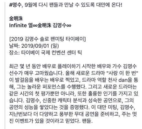 9.1일에 대만 팬미팅 떴어