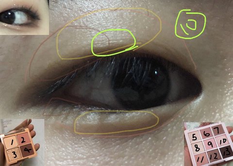 너무 짙어보여서 12번 섀도우 (펄) 조금 얹어서 좀 자연스러워 보이게 했어!