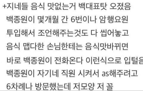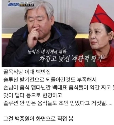 방송보는데 백종원님 표정이…… 내 앞에 있는것도 아닌데도 그 감정 다 알수있었고 내가 백종원님 눈을 못 마주치겠더라. 편집하지않고 내보낸 방송사도 잘했고 저분들은 개과천선 하시길(안될거같다)