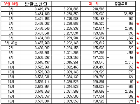 6화 8/1 목요일 인기상 격차 그래프 10:0...