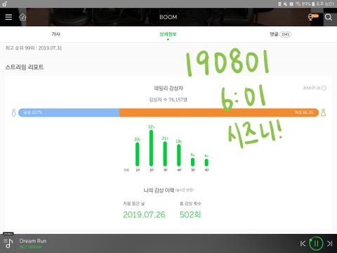 음원발매일부터 스밍한 타이틀곡 누적횟수