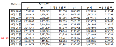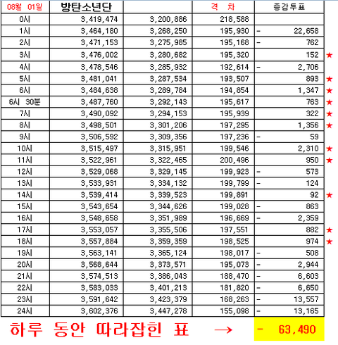 1화 8/2 금요일 인기상 격차 그래프 8:30 PM