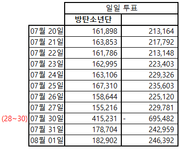 2화 8/2 금요일 인기상 격차 그래프 7:30 PM