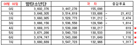 1화 8/2 금요일 인기상 격차 그래프 8:30 PM