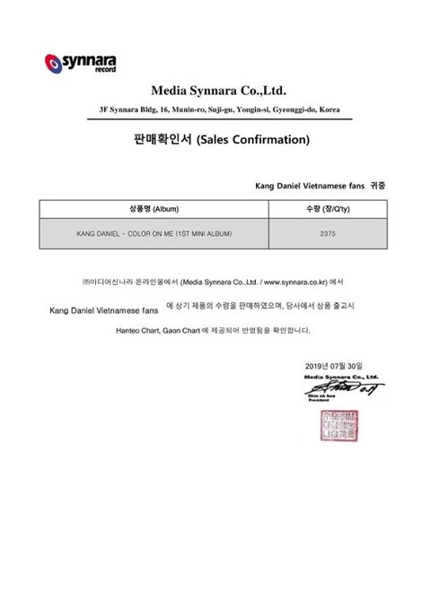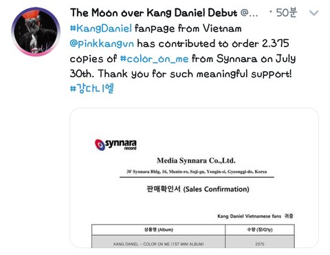 베트남포룽이들 강다니엘앨범공구 영수증 올라왔어❤