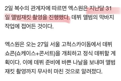 '프듀X101' 엑스원, 앨범재킷 촬영 마쳤다..데뷔 준비 박차