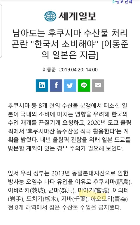 남아도는 후쿠시마 수산물 처리 곤란 "한국서 소비해야" [이동준의 일본은 지금] - http://www.segye.com/newsView/20190417510369?OutUrl=ms