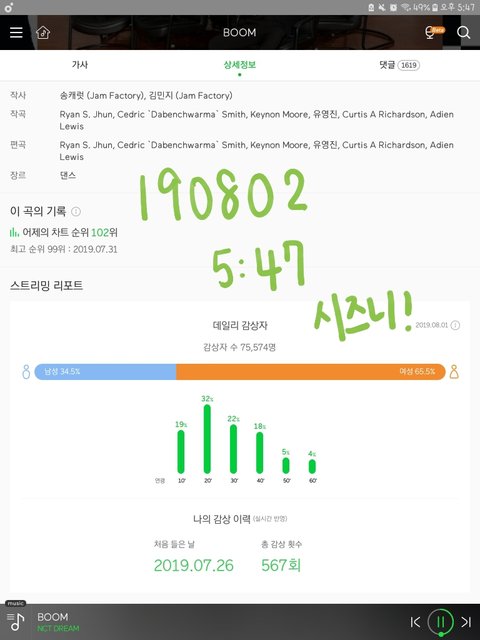 음원사이트 순위 전체적으로 하락세야ㅠㅠ 다들 진정하고 스밍 돌리러 가자!!