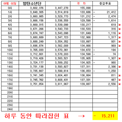 3화 8/2 금요일 인기상 격차 그래프 6:00 PM