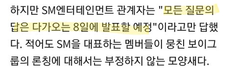 얘그라 8일에 스엠이 다 알려주겠대