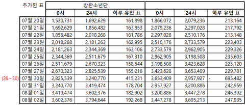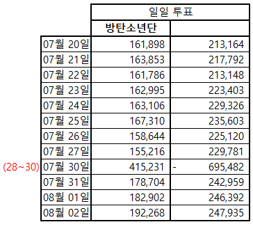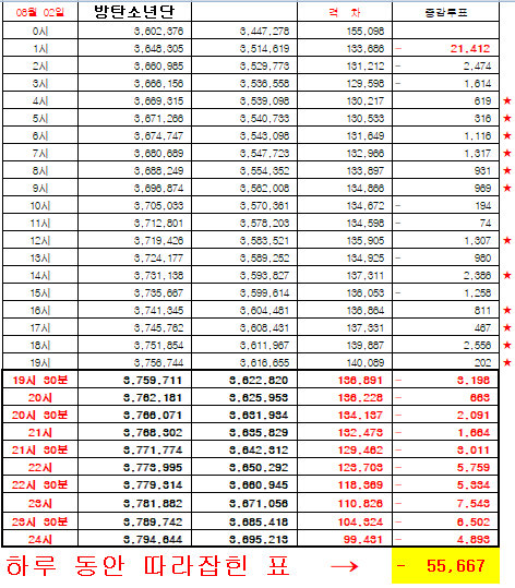 8/2 금요일 인기상 격차 그래프 정산