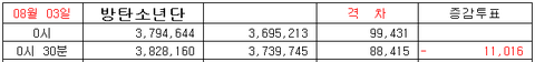 8/3 토요일 인기상 격차 그래프 0시 30분 AM