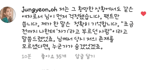 오정연이 우주안 인스타에 댓글 씀(feat.강타)