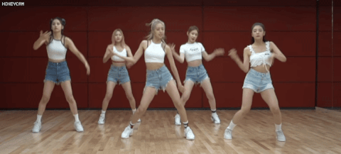 리아가 맨 오른쪽인데 혼자 다른춤 추는거같아 그옆 채령도 언니 채연에 비하면 너무 못하는듯