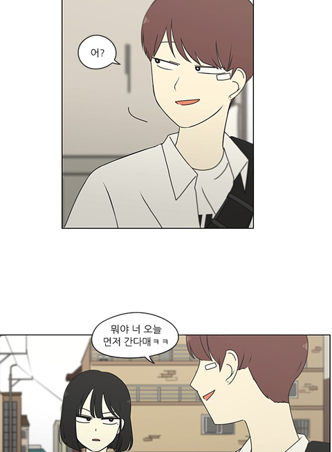 자림이랑 동시에 벨을 누르자 굳이 '멈칫' 하고 다음 두컷 모두 약간 머쓱하는? 당황하는? 경우