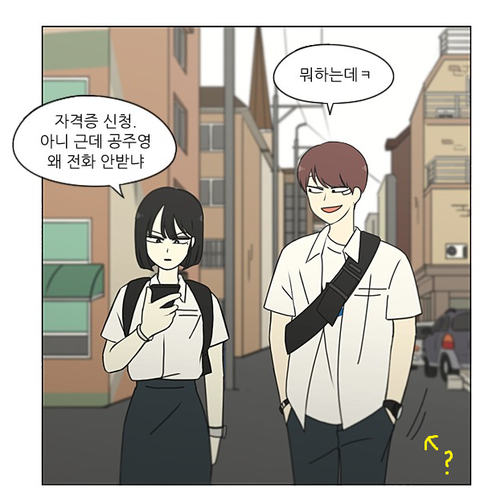 폰보고 걷더니 왜 자림이가 오니까 바로 주머니에 폰 집어넣는거예요?
