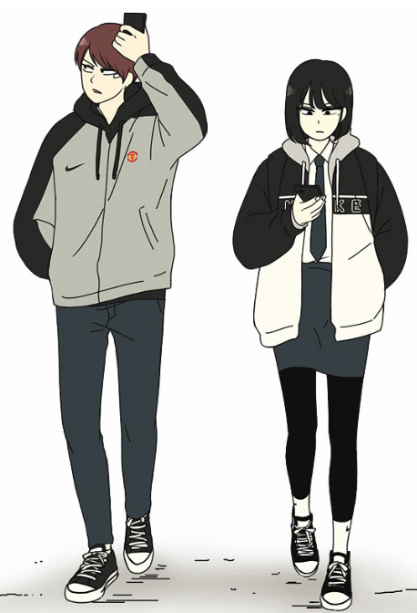 폰을 보고있는 사람은 같이있는 상대에게 관심이 없다 이고 손을 올린 사람은 같이있는 상대에게 관심이 있다