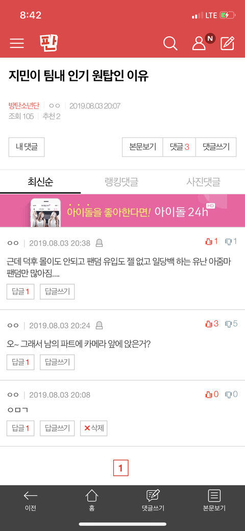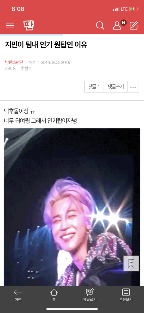 ⚠️조방) 밑밑 지민이 팀내 인기 여기서 ㅇㅁㄱ