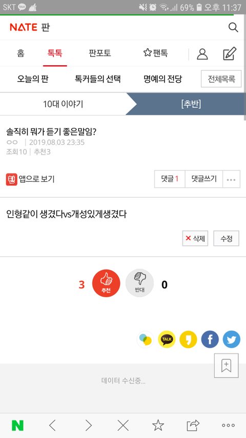 댓글 많은 톡