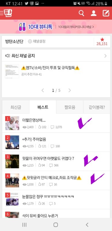 캡처 보라체크되어 있는 글 추천 댓 도배해줘