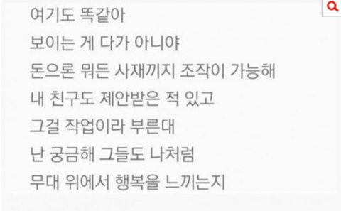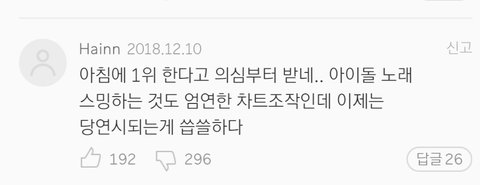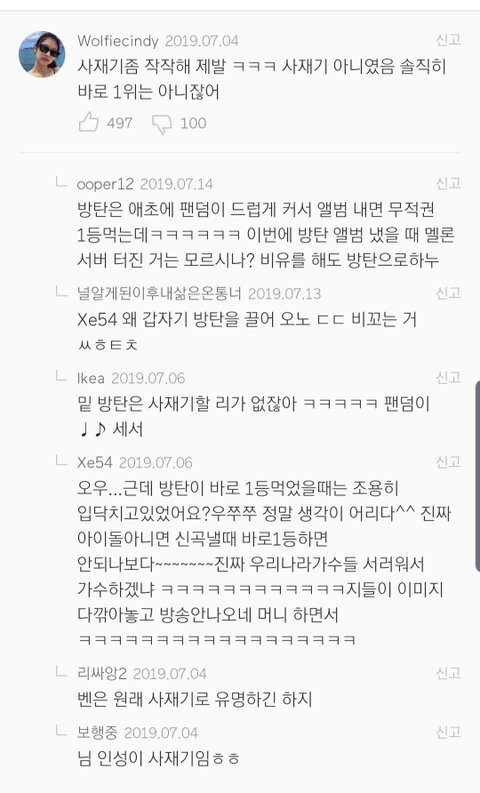 근데 어차피 아이돌 노래도 1인당 1아이디로 순수하게 스밍하는거 아니잖아 아이디 수백개씩 만들고 염병을 하면서 누가 누굴 지적하는지 몰겠음ㅋㅋㅋㅋㅋㅋㅋㅋ사재기가 잘했단건 아닌데 그걸 아이돌 팬들이 지적하는게 웃기단거임ㅋㅋㅋㅋㅋ
