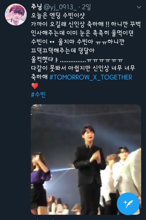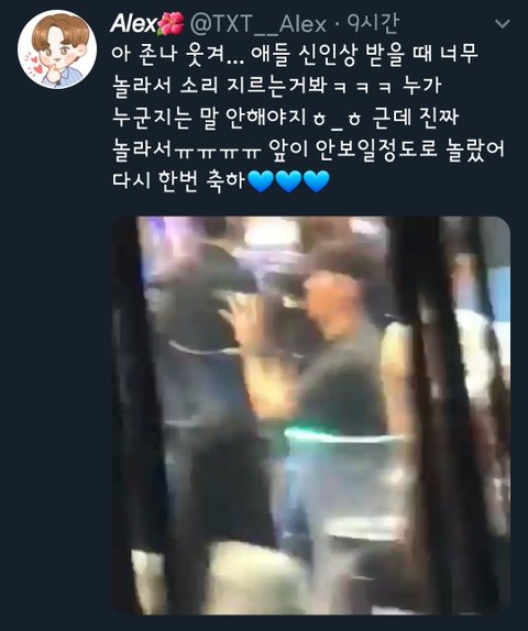 이영상은 투바투팬이 찍은거 편집본인데 투모로우 호명되자 캠날아가는장면ㅋㅋㅋ 근데막 내맘같이기뻐함