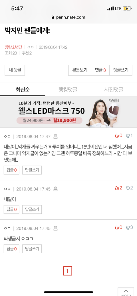 조방) 밑 박지민 팬들에게 여기서봐 댓도 ㅇㅁㄱ