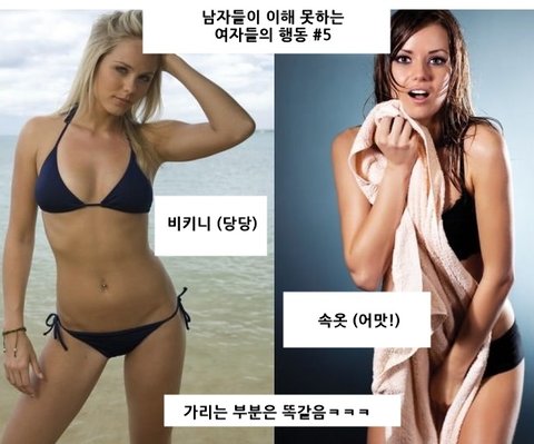미친거아니냐ㅋㅋㅋㅋㅋ 진짜 남자놈들 공감능력 1도 없는듯 어떻게 가리는데는 똑같은데 수영복은 당당하고 속옷은 부끄러워하냐고 조롱할수가있지